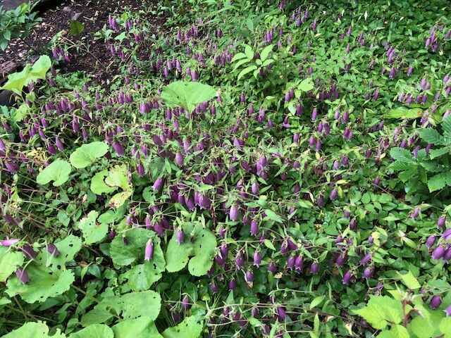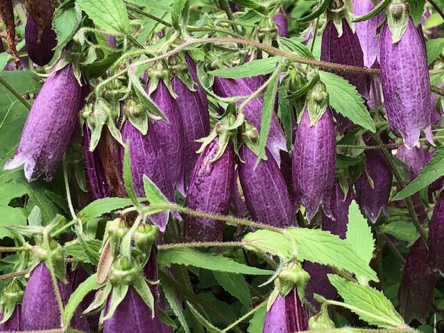 ホタルブクロが群生している。こんなのを見るのも初めてだ。蜂たちがブンブンいいながら、蜜を吸いに来ている。